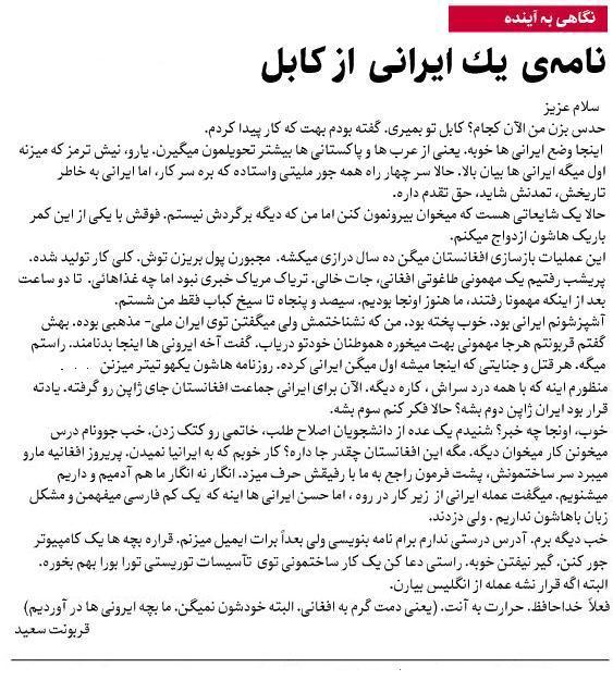 [Satire] Letter of an Iranian from Kabul